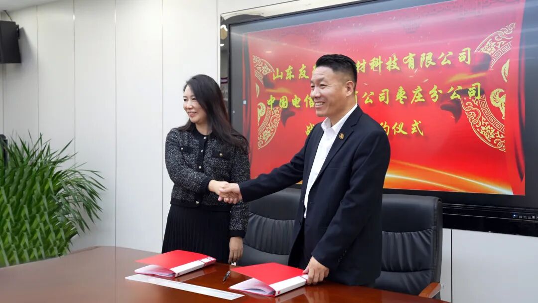 同心攜手共進,共創(chuàng)數(shù)字未來!友樂邦建材科技與中國電信股份有限公司棗莊分公司達成全面戰(zhàn)略合作