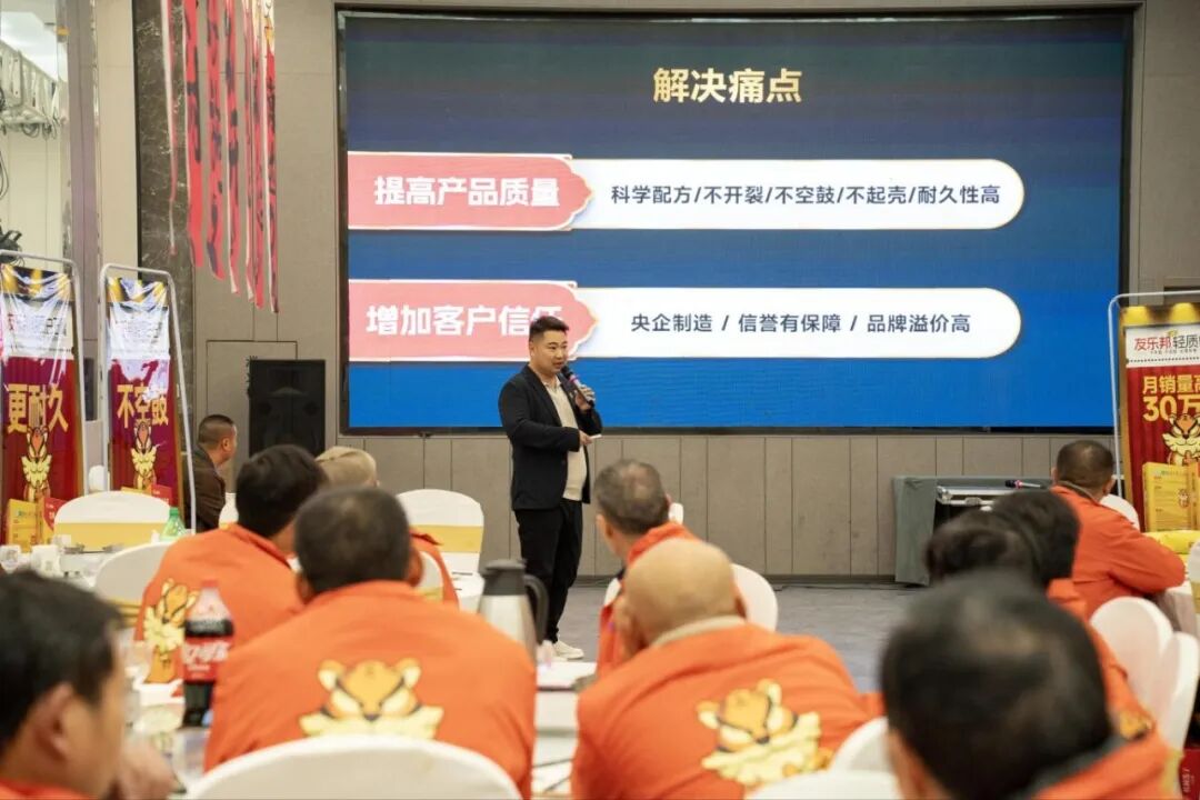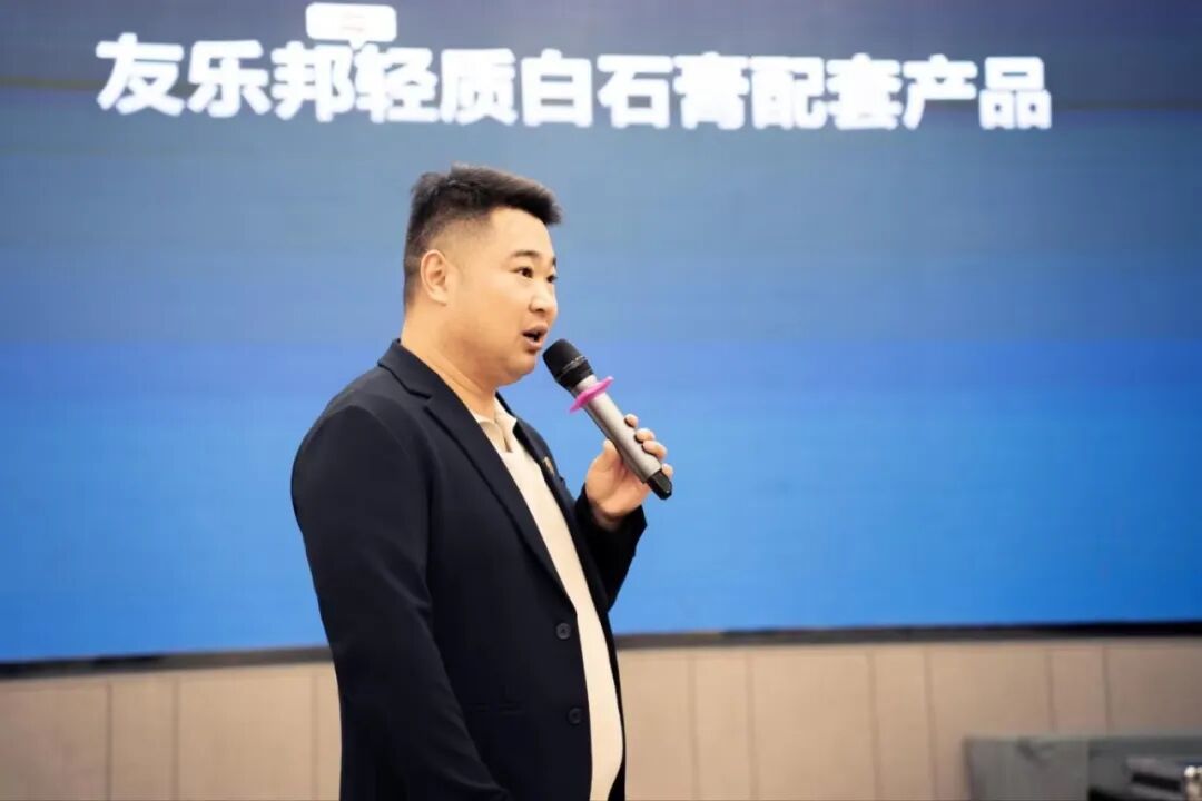 新品推介暨技術(shù)交流 為奮力沖刺四季度任務(wù)目標(biāo),加快布局2025年發(fā)展規(guī)劃。 11月18日,山東友樂邦建材科技有限公司舉辦以“共盈共贏,感知新質(zhì)未來”為主題在江蘇淮安舉辦了一場別開生面的產(chǎn)品推介暨技術(shù)交流會(huì),全方位展示友樂邦建材科技在中國綠色建材領(lǐng)域的最新技術(shù)與產(chǎn)品成果。本次會(huì)議共邀請了20家授牌經(jīng)銷商參加。 產(chǎn)品推介會(huì)上,山東友樂邦建材科技集團(tuán)董事長訾興興的親自擔(dān)任推介官,與我們共同見證了友樂邦新一代輕質(zhì)白石膏的卓越性能,以及它為裝修行業(yè)帶來的革新。 技術(shù)交流促發(fā)展 為了讓大家更加直觀地感受新一代輕質(zhì)白石膏的優(yōu)越性,我們特地安排了現(xiàn)場批試環(huán)節(jié),邀請大家親自上手,通過實(shí)際試驗(yàn),輕質(zhì)白石膏確實(shí)收到了頗多好評(píng),打磨不漏底,薄批不脫粉。 山東友樂邦建材科技將繼續(xù)秉承“品質(zhì)至上,客戶第一”的原則,加速產(chǎn)品高效創(chuàng)新,聚力新興市場開拓,通過產(chǎn)品優(yōu)勢定制化、高賦能產(chǎn)品優(yōu)勢策略,構(gòu)筑市場競爭的堅(jiān)固壁壘。 推出更多優(yōu)質(zhì)產(chǎn)品,為消費(fèi)者帶來更加美好的生活體驗(yàn),為綠色建材發(fā)展貢獻(xiàn)自身力量!
